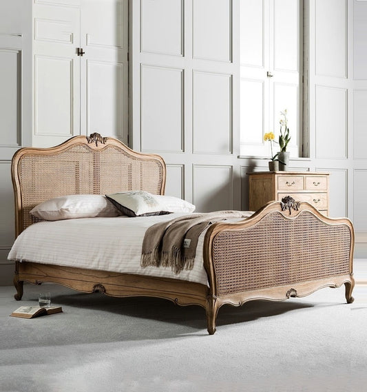 Adouer Wood Hand Carved Natural French Vintage Rattan Bed
