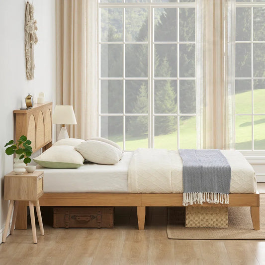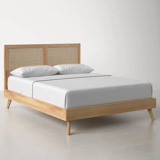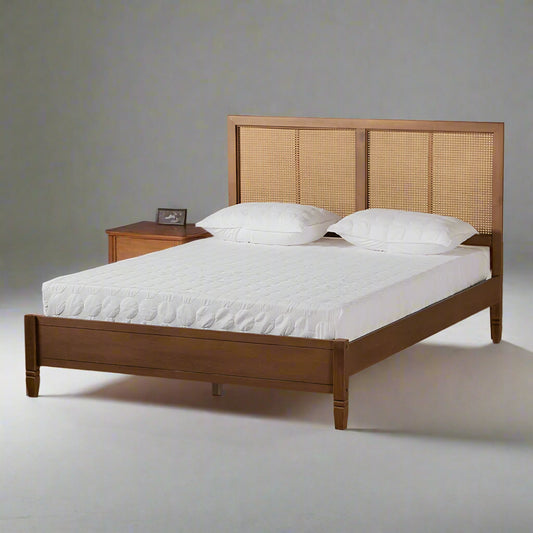 ADOUER WOOD Acacia Wood Standard Vintage Rattan Cane Bed Natural Finish