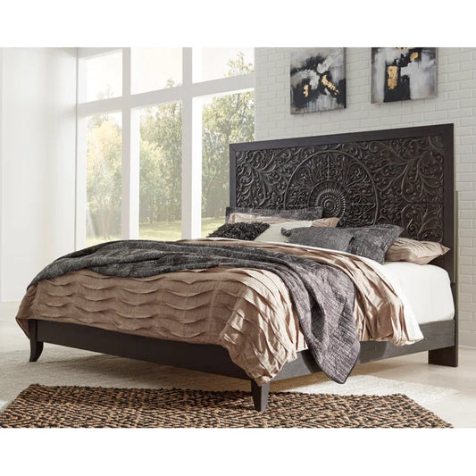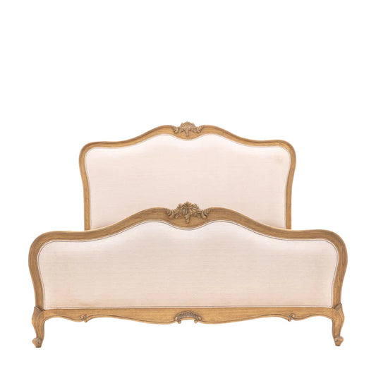 Adouer Wood Hand Carved Natural Vintage Upholstered Bed