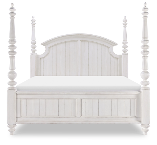ADOUER WOOOD "Solid Sheesham Wood Poster Bed in Elegant Milky White"