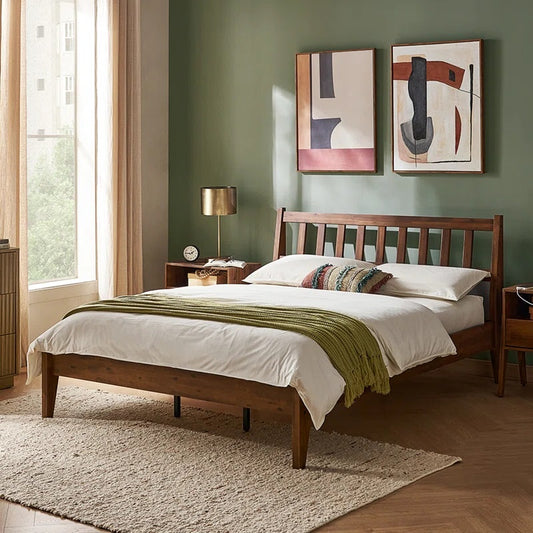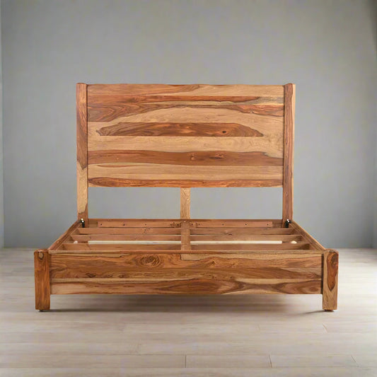 ADOUER WOOD Solid Acacia Wood Mid-Century Classic Bed Without Storage For Bedroom (Honey)