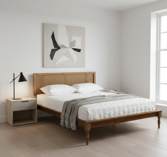 ADOUER WOOD Acacia Wood Standard Vintage Rattan Cane Bed Natural Finish