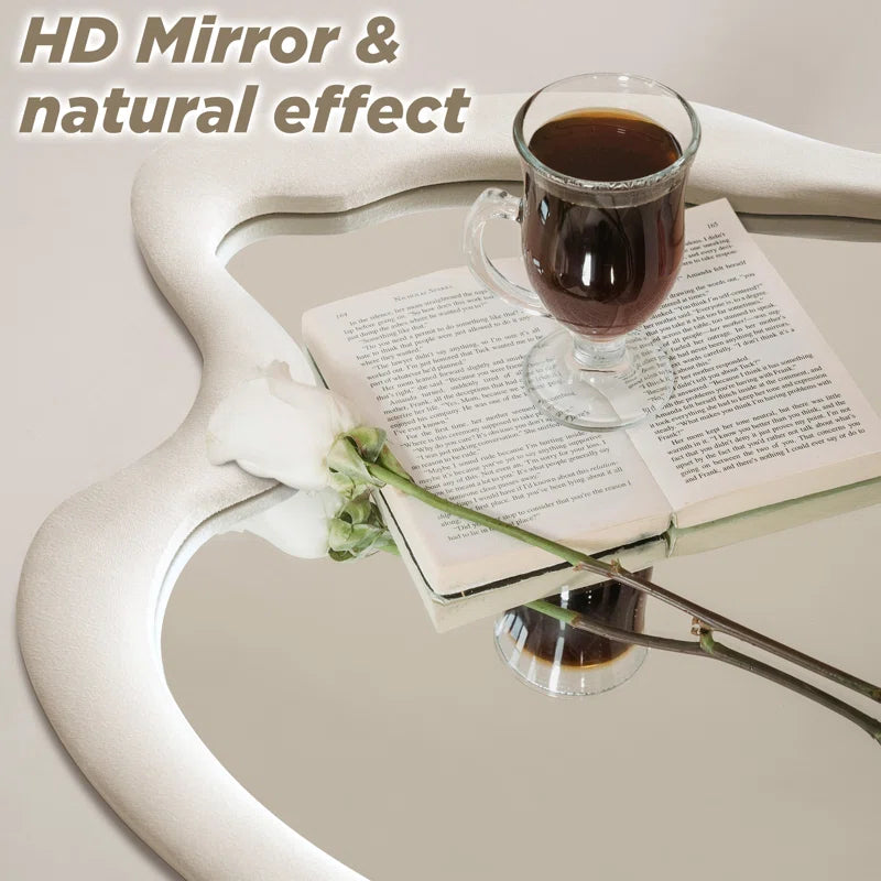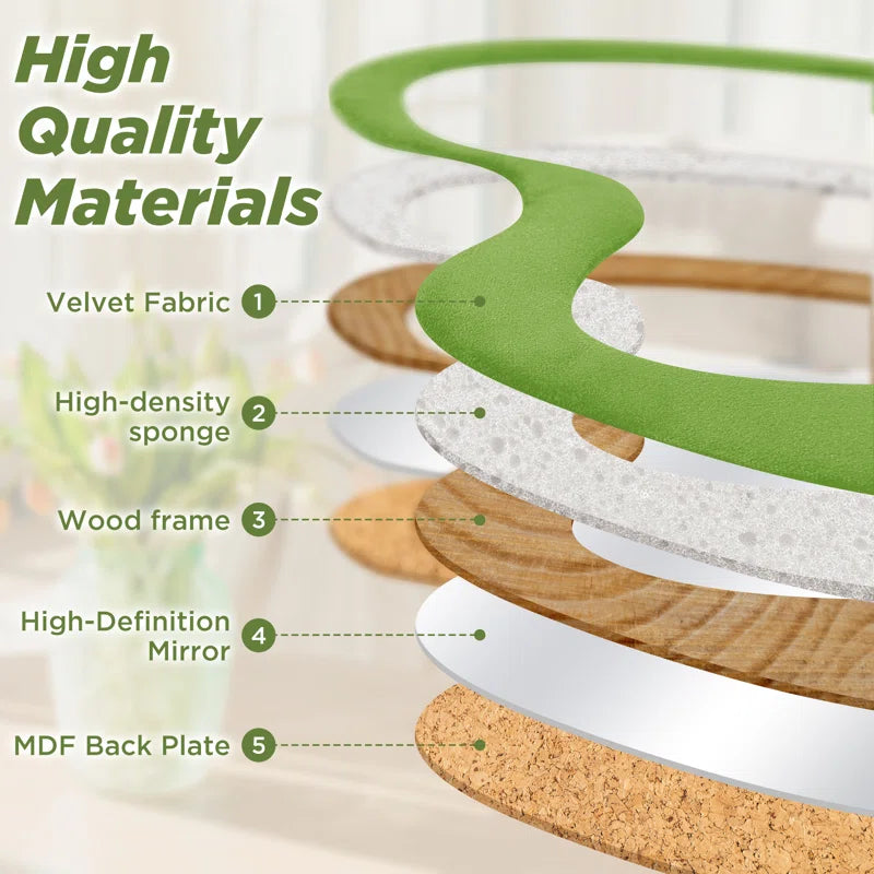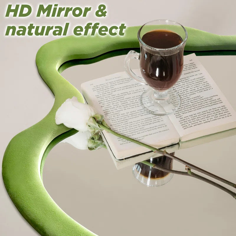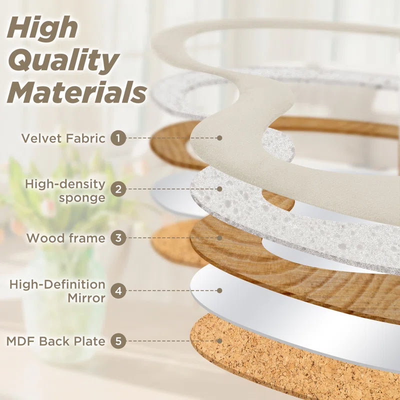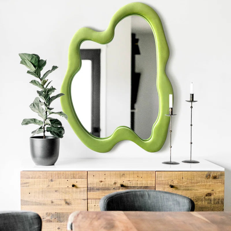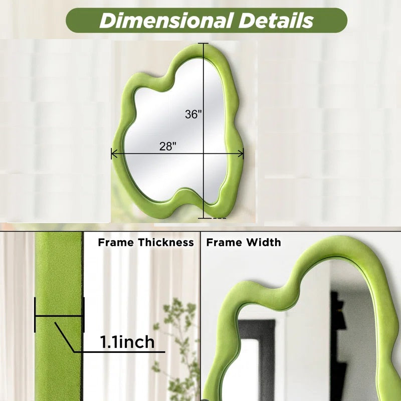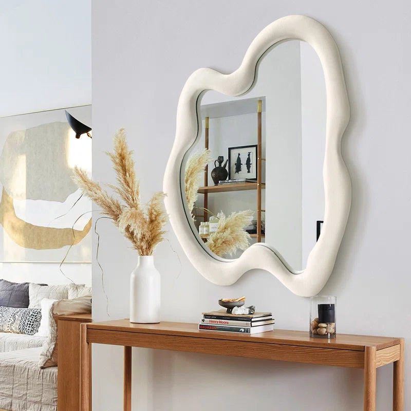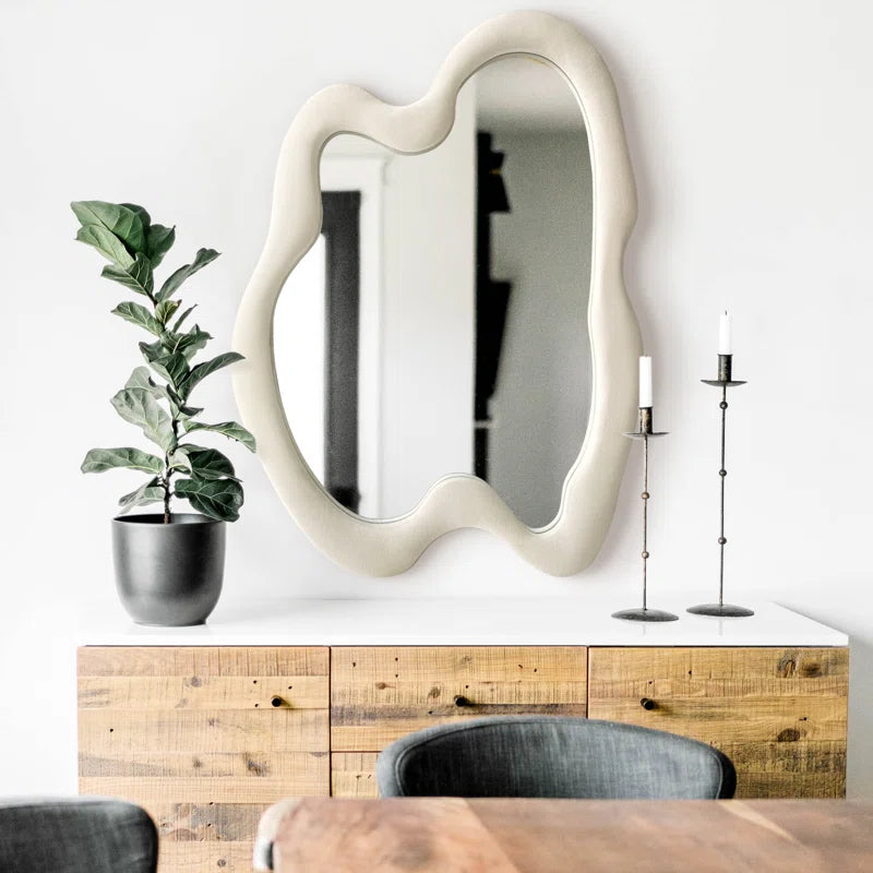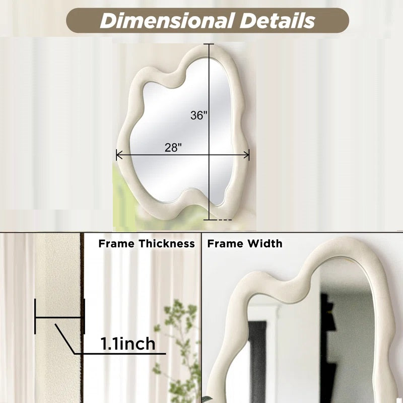 ADOUER WOOD 36" Wavy Mirror With Flannel Wrapped Wooden Frame, Modern Decorative Mirror for Living Room, Entryway, Bedroom, Dining Room, Living Room