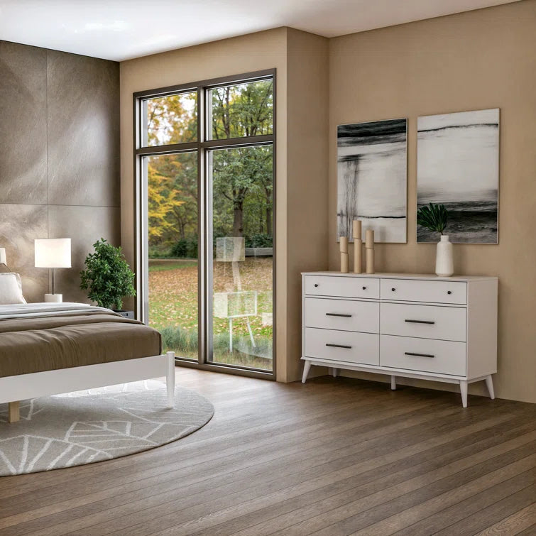ADOUER WOOD 6 Drawers Solid Sheesahm Wood Chest of Drawers, White
