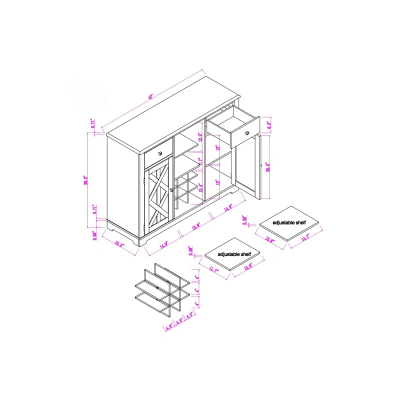 Adouer Wood "Elegant Navy Blue Solid Sheesham Wooden Bar Cabinet with Wine Rack and Glass Storage"