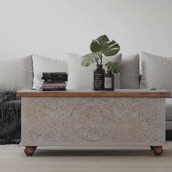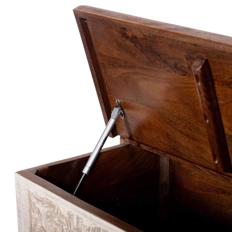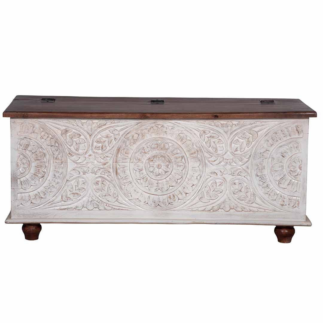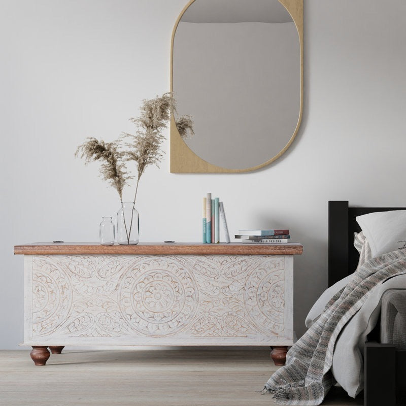 ADOUER WOOD Hand-Carved Solid Wood Storage Accent Trunk with Floral Mandalas