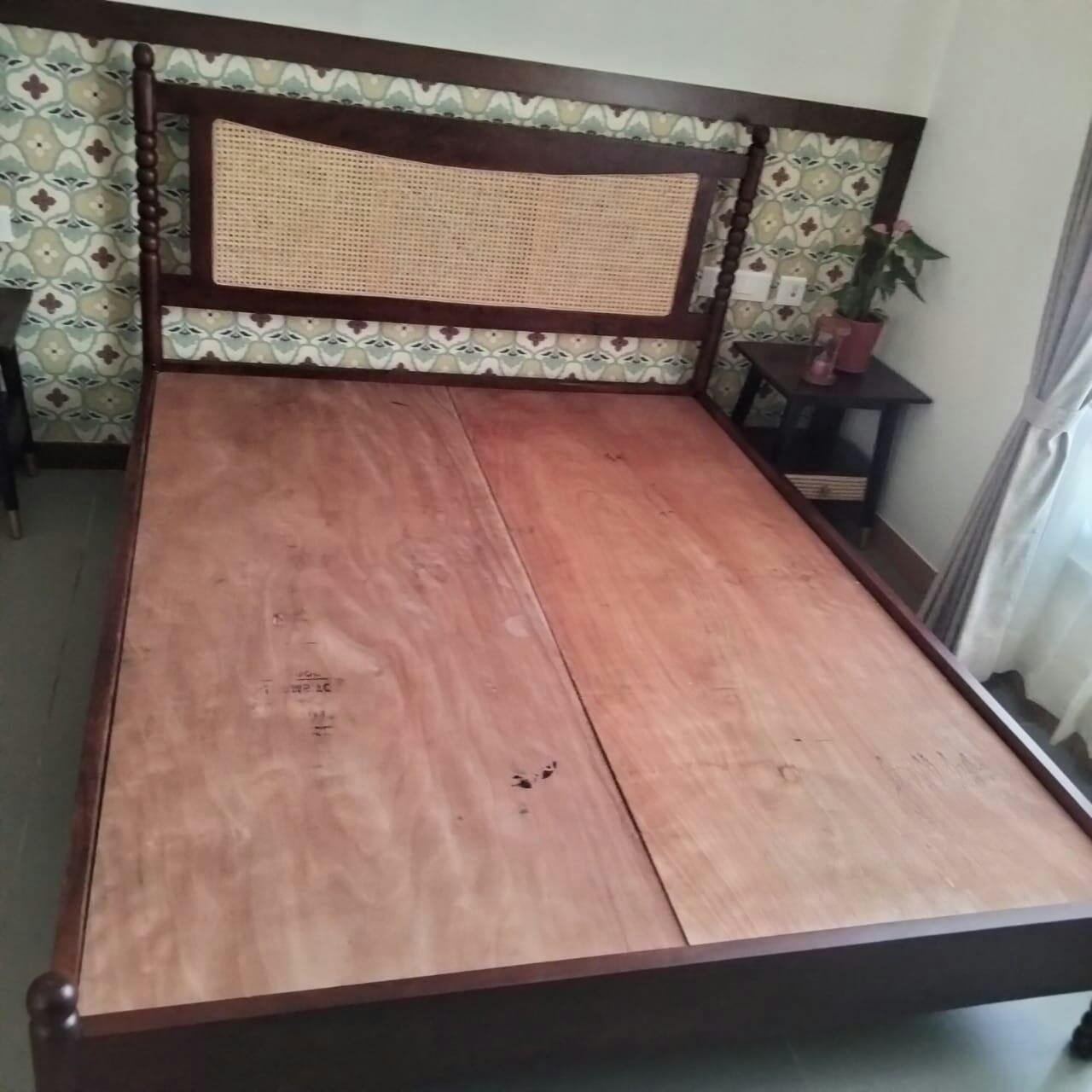 ADOUER WOOD Handcrafted Solid Sheesham Wood Vintage Rattan Cane Bed – Natural Finish