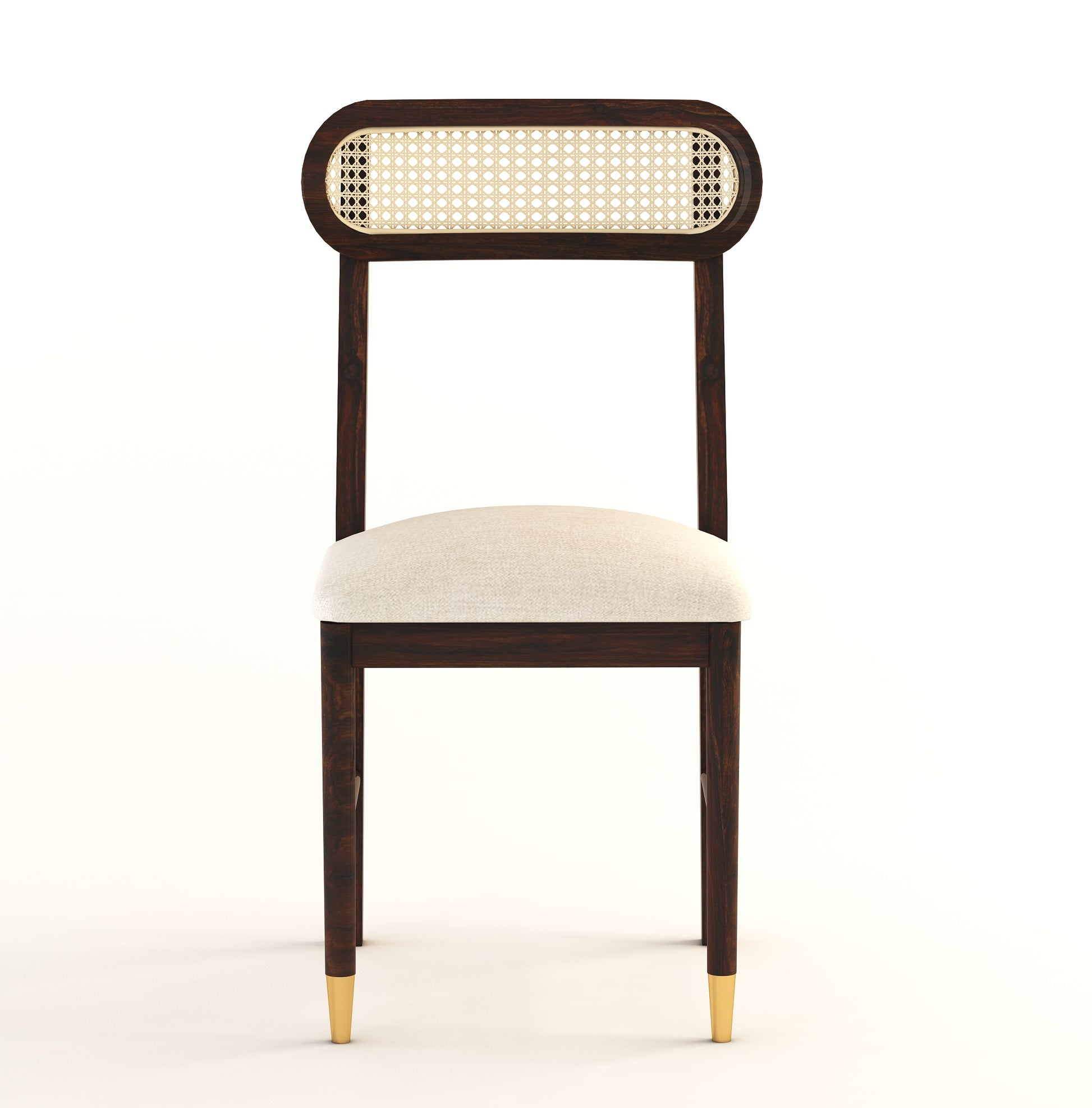 ADOUER WOOD "Mid-Century Modern Wooden Dining Chair with Cane Backrest and Upholstered Seat"