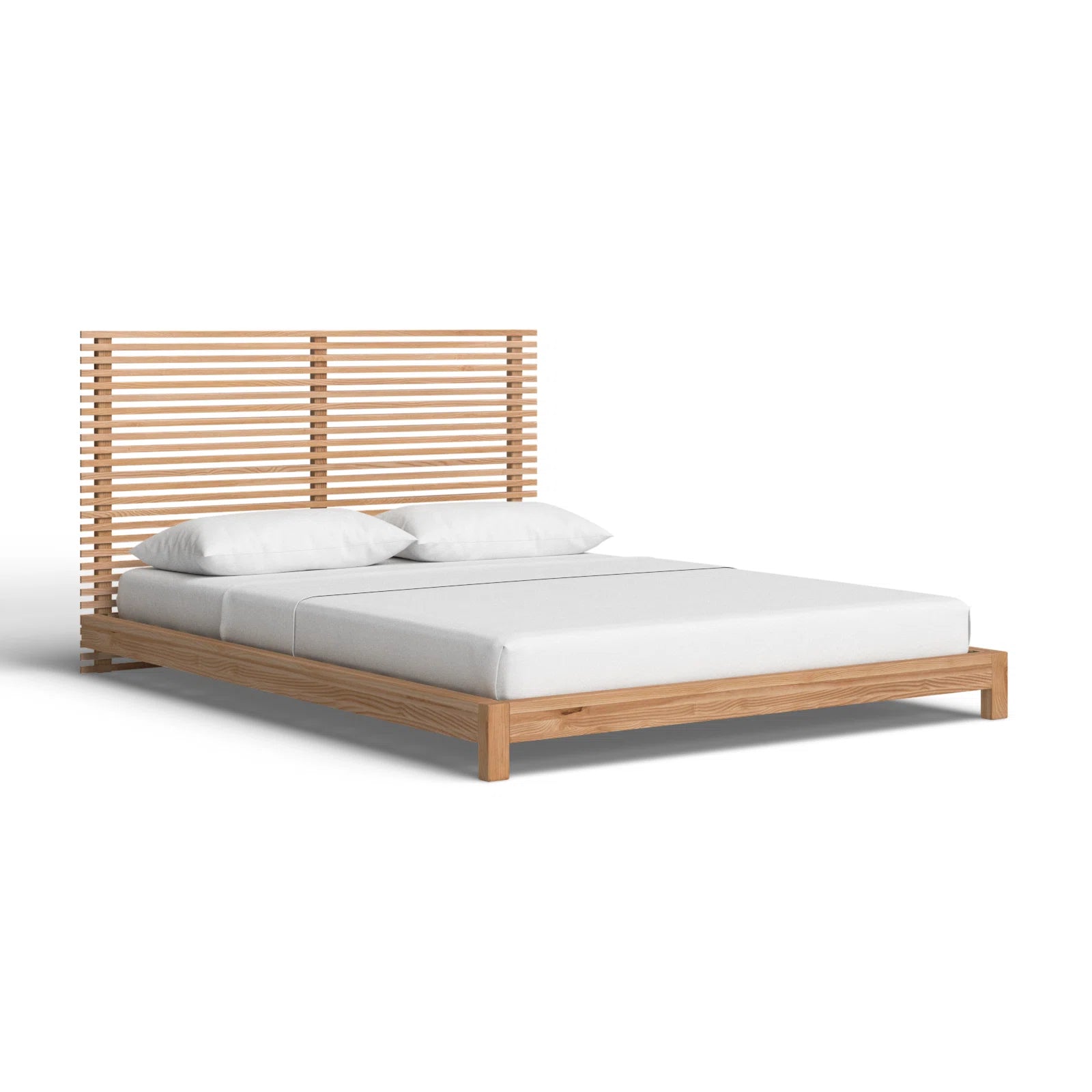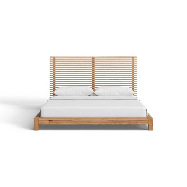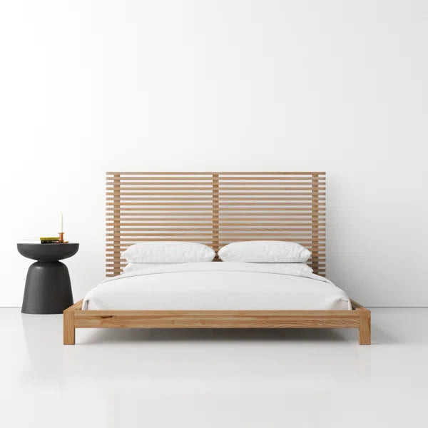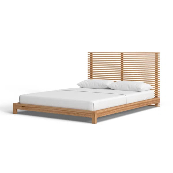 Adouer Wood "Modern Solid Sheesham Wood Bed with Grooved Headboard – Natural Finish"