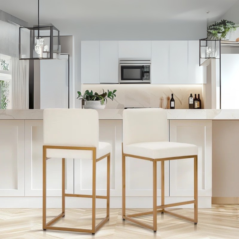 Adouer Wood "Modern White Upholstered Bar Stools with Gold Metal Frame - Set of 2"