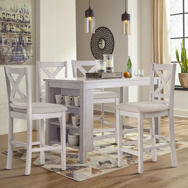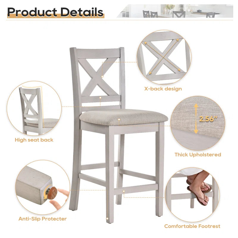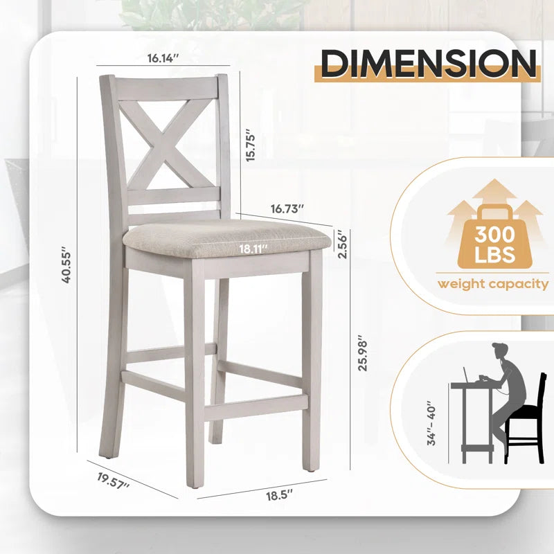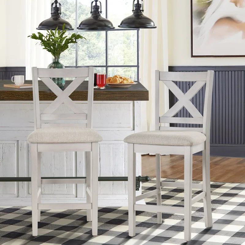 Adouer Wood "Set of 2 Gray White Solid Sheesham Wood Cross Bar Chairs with Cushioned Seats"