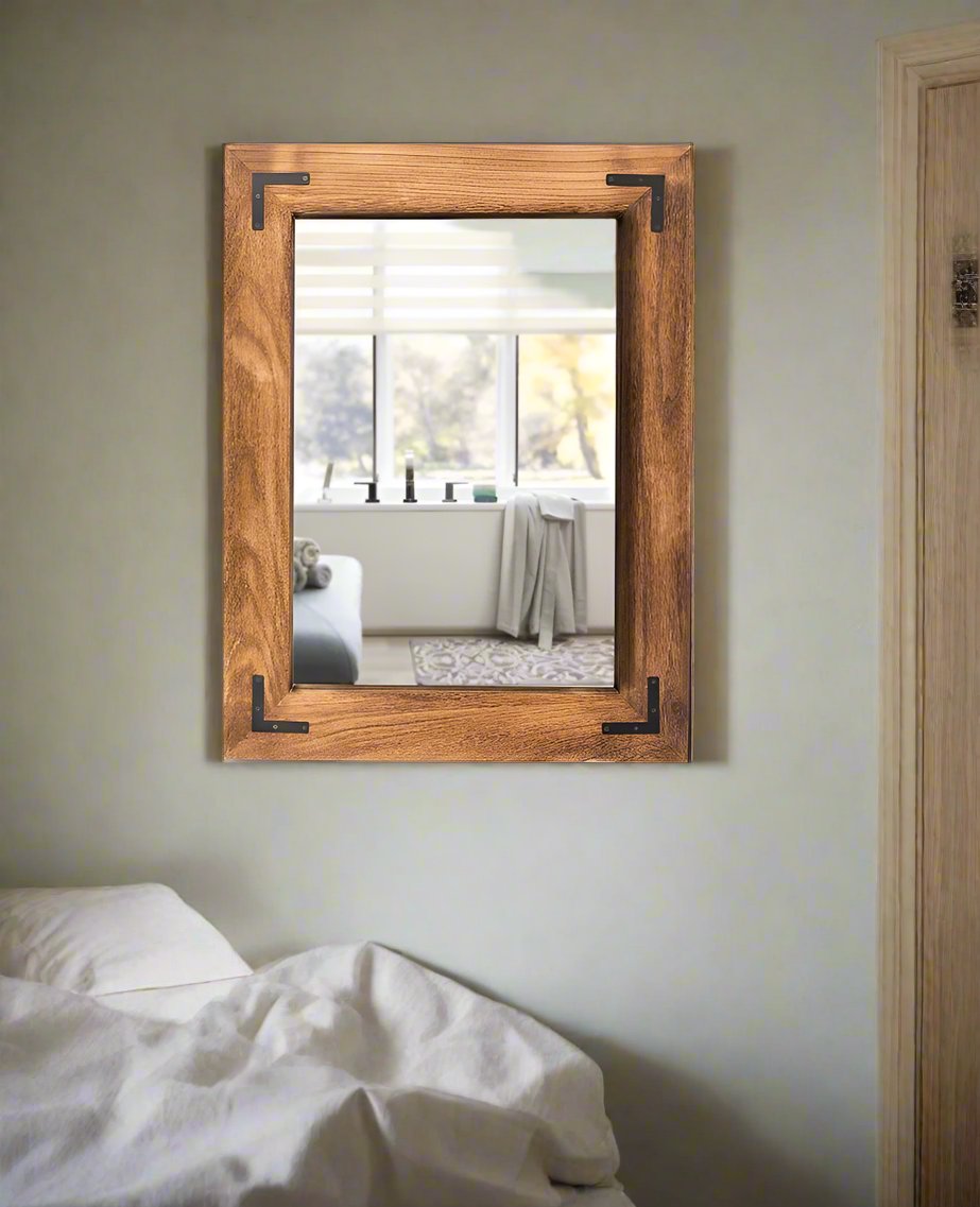 ADOUER WOOD Solid Acacia Wood Wall Mirror For Bedroom & Home (Natural)