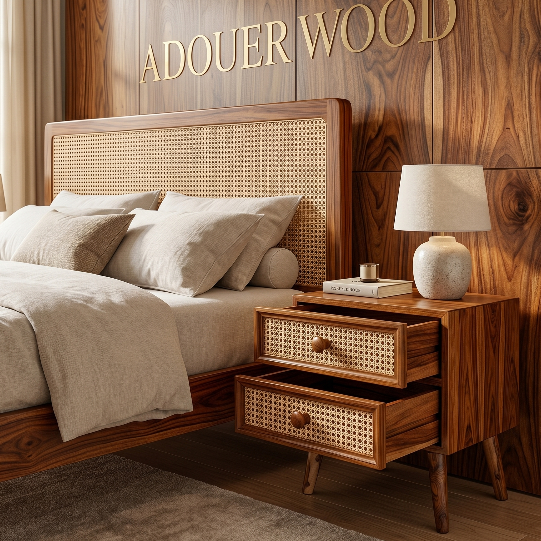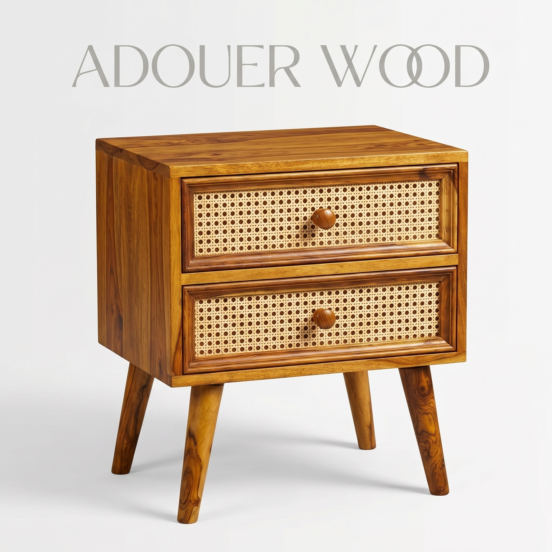 Adouer Wood Solid Sheesham Bedside Table with Cane Work Drawers