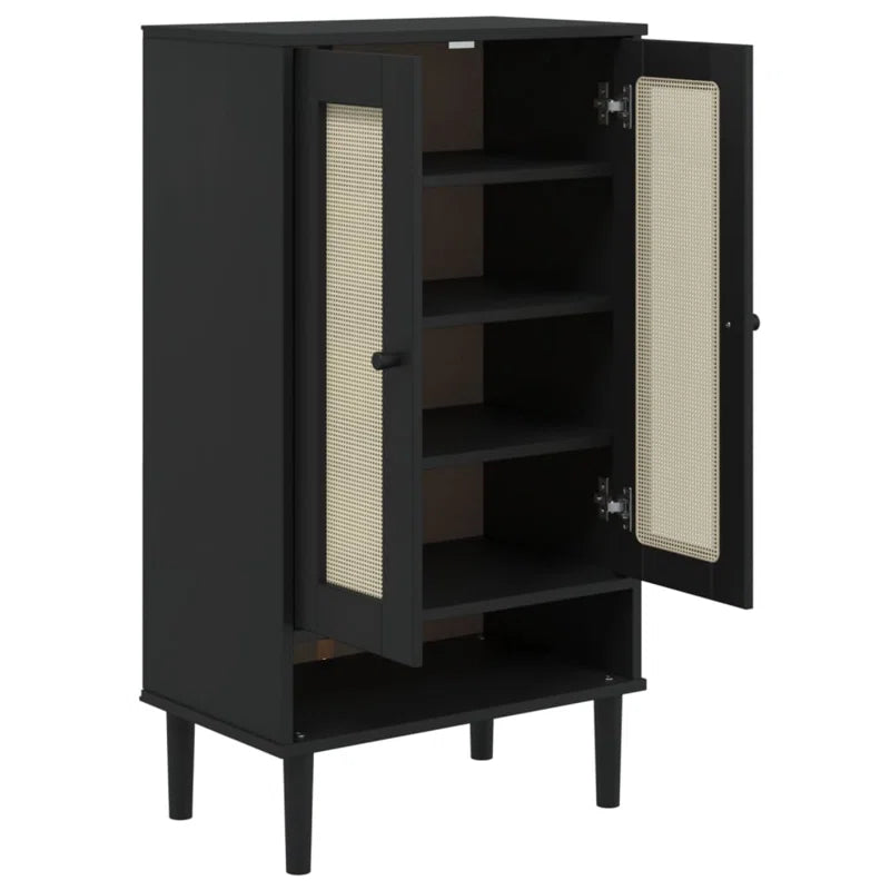 ADOUER WOOD Solid Sheesham Wood 10 Pair Rattan Cane Door Shoe Rack