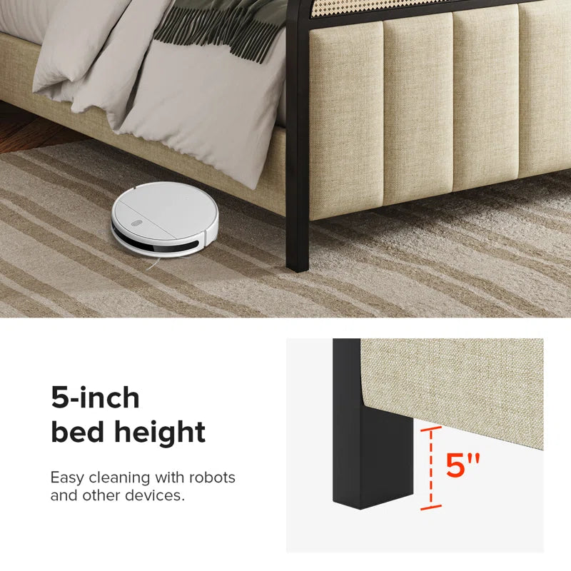 ADOUER WOOD Solid Sheesham Wood Vintage Rattan Cane Bed – Black Finish