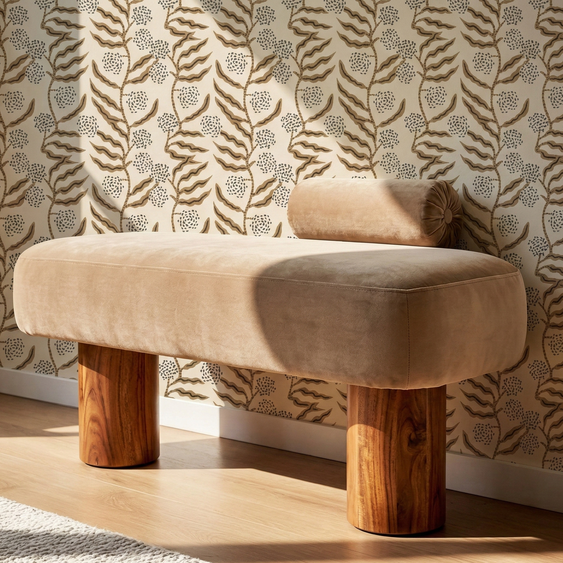 ADOUER WOOD Upholstered Fabric Bench with Solid Wood Cylindrical Legs