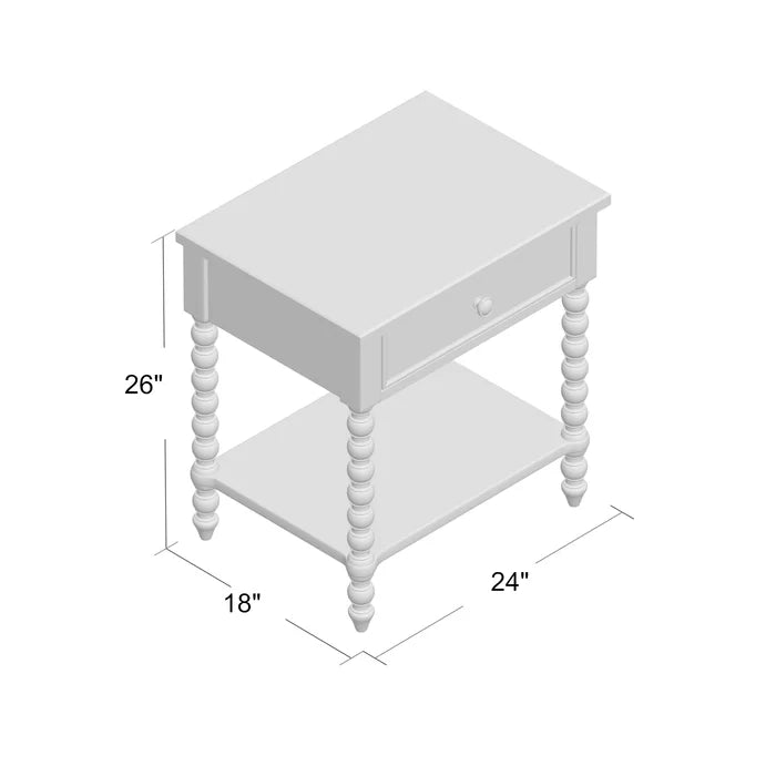 ADOUER WOOD Vintage-Inspired Spindle Leg Bedside Table with Drawer and Shelf