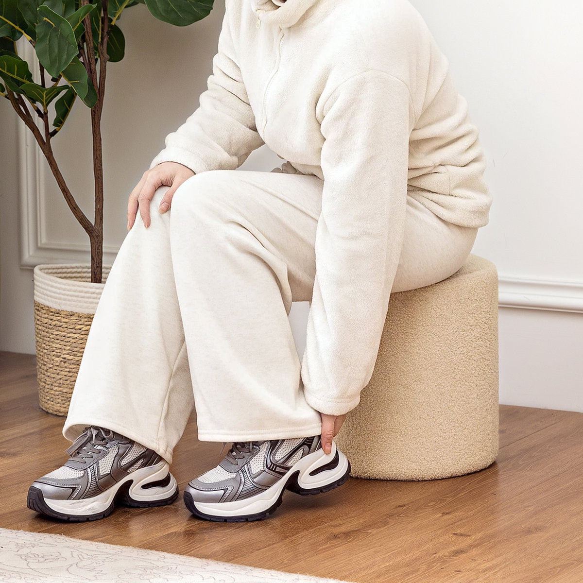 Beige Teddy Boucle Fabric Round Ottoman/Footrest