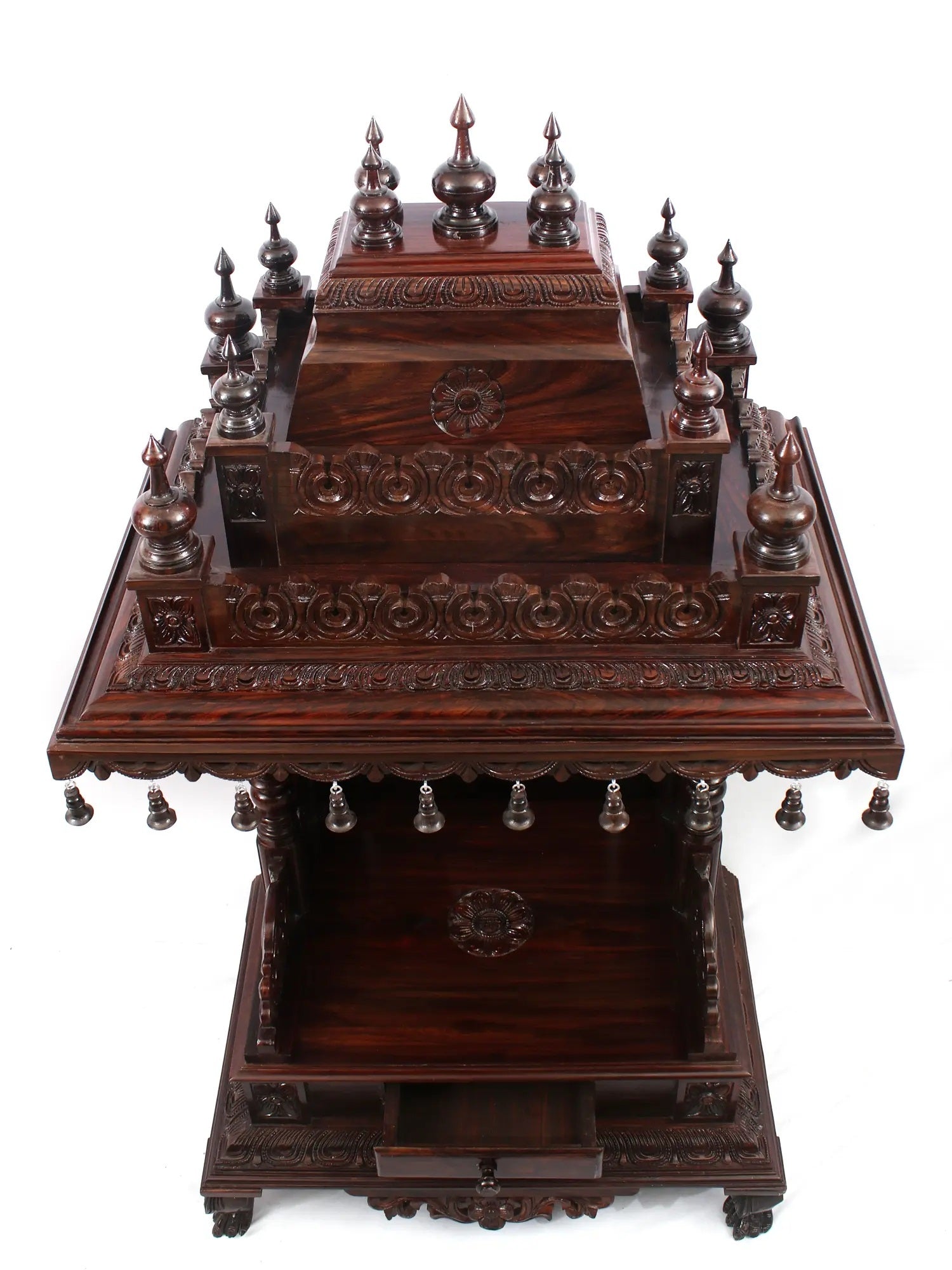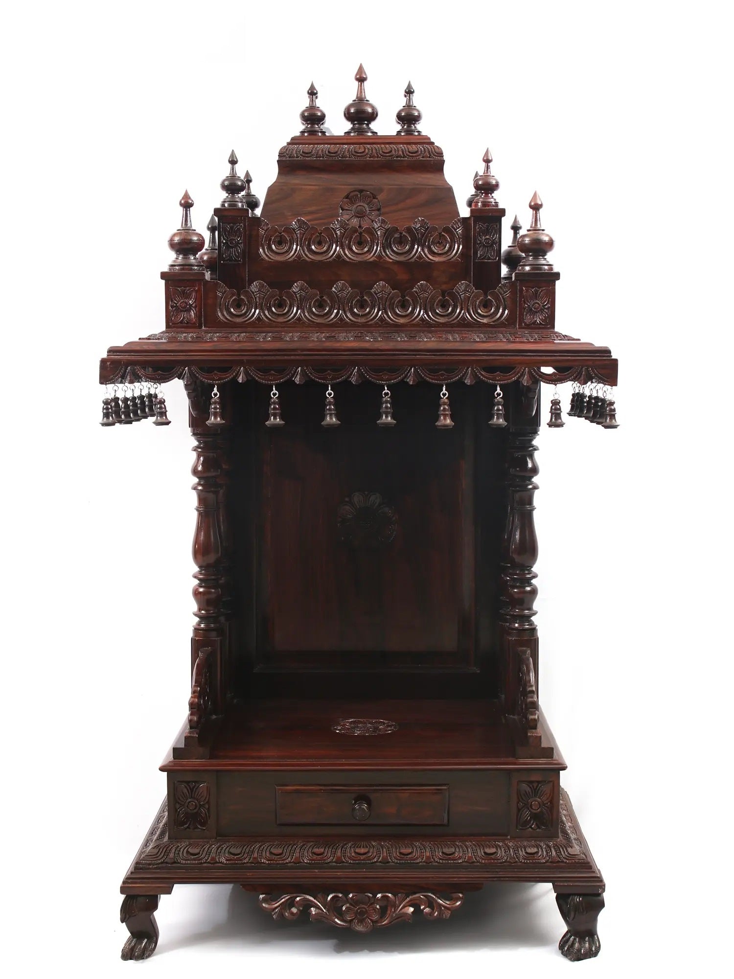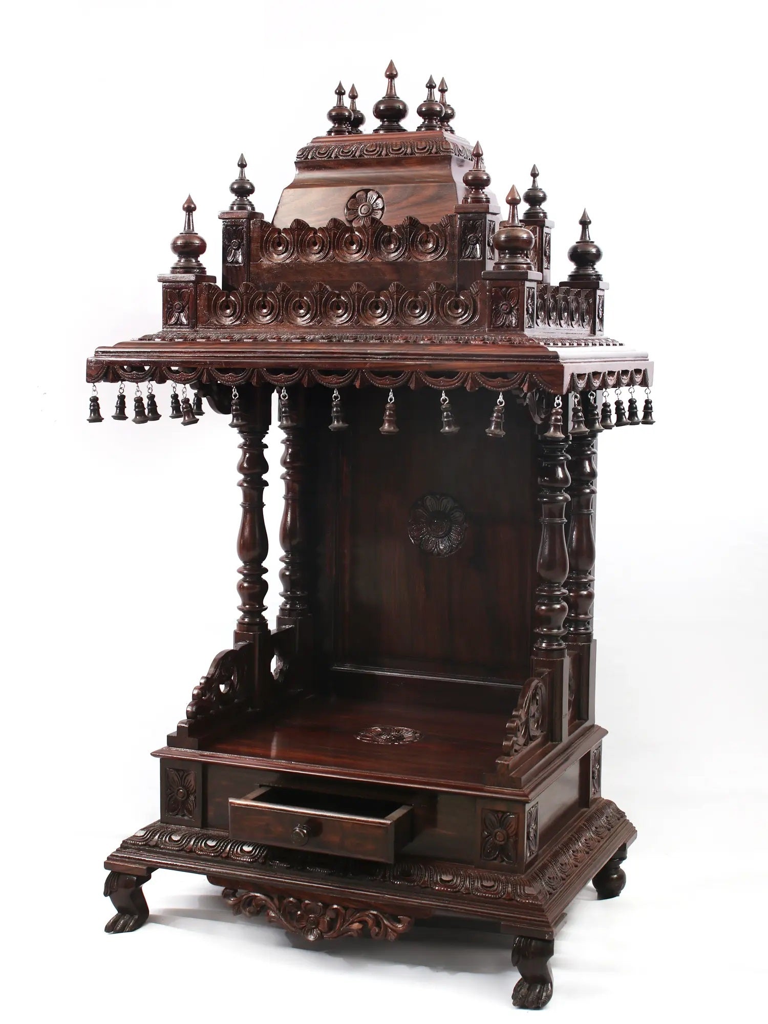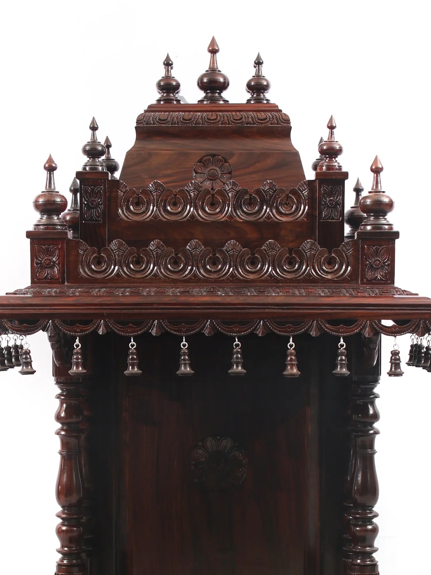 Intricately Carved Indian Style Sheesham Wood Mandir - Walnut Finish