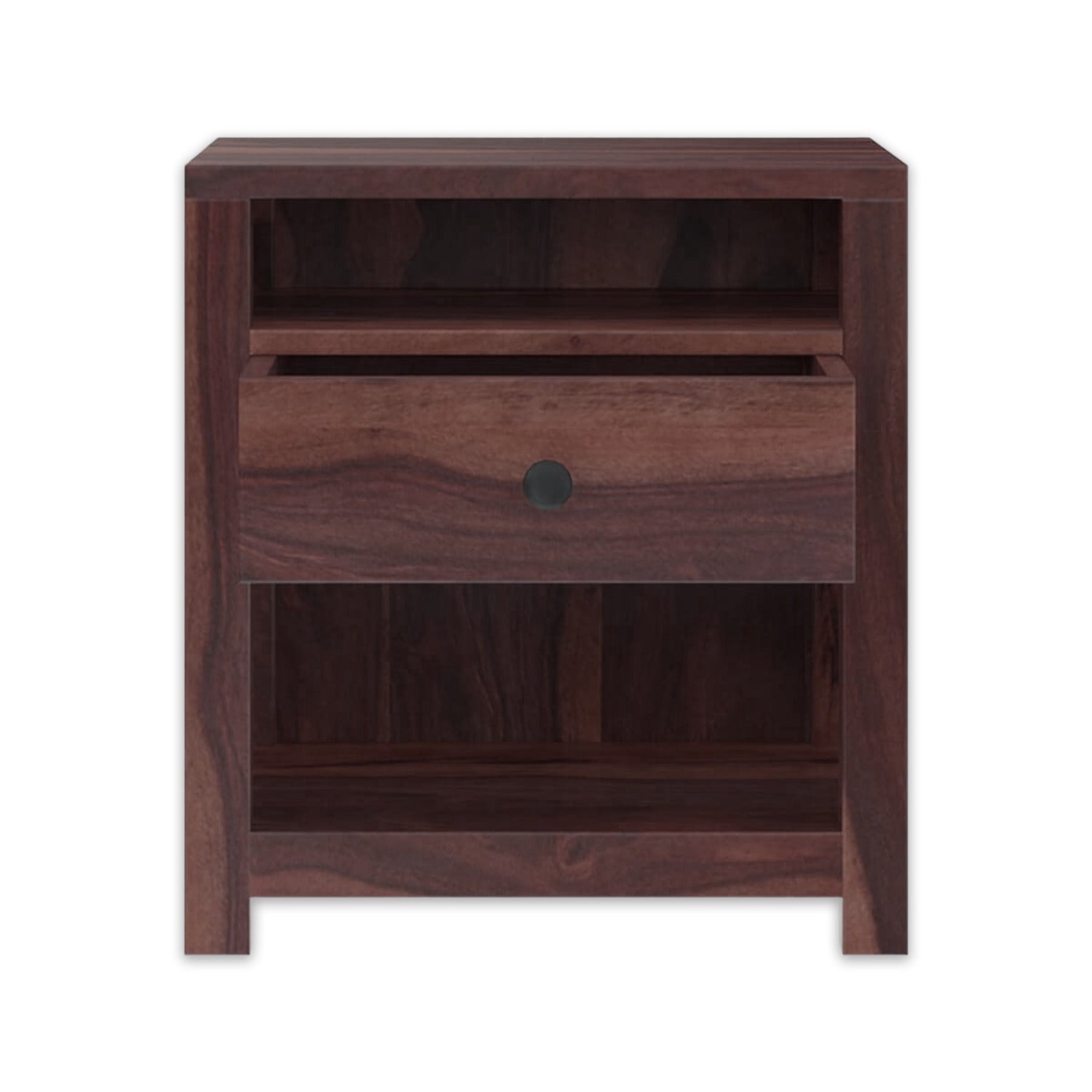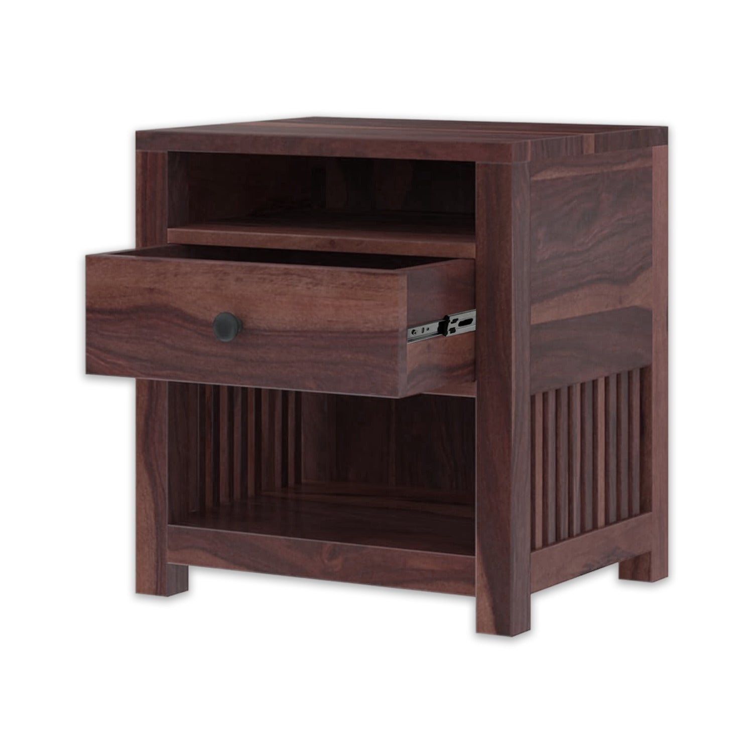 Sheesham Wood Bedside Table with 1 Premium Metal Channeled Drawer and 2 Shelf Storage for Living Room Bedroom