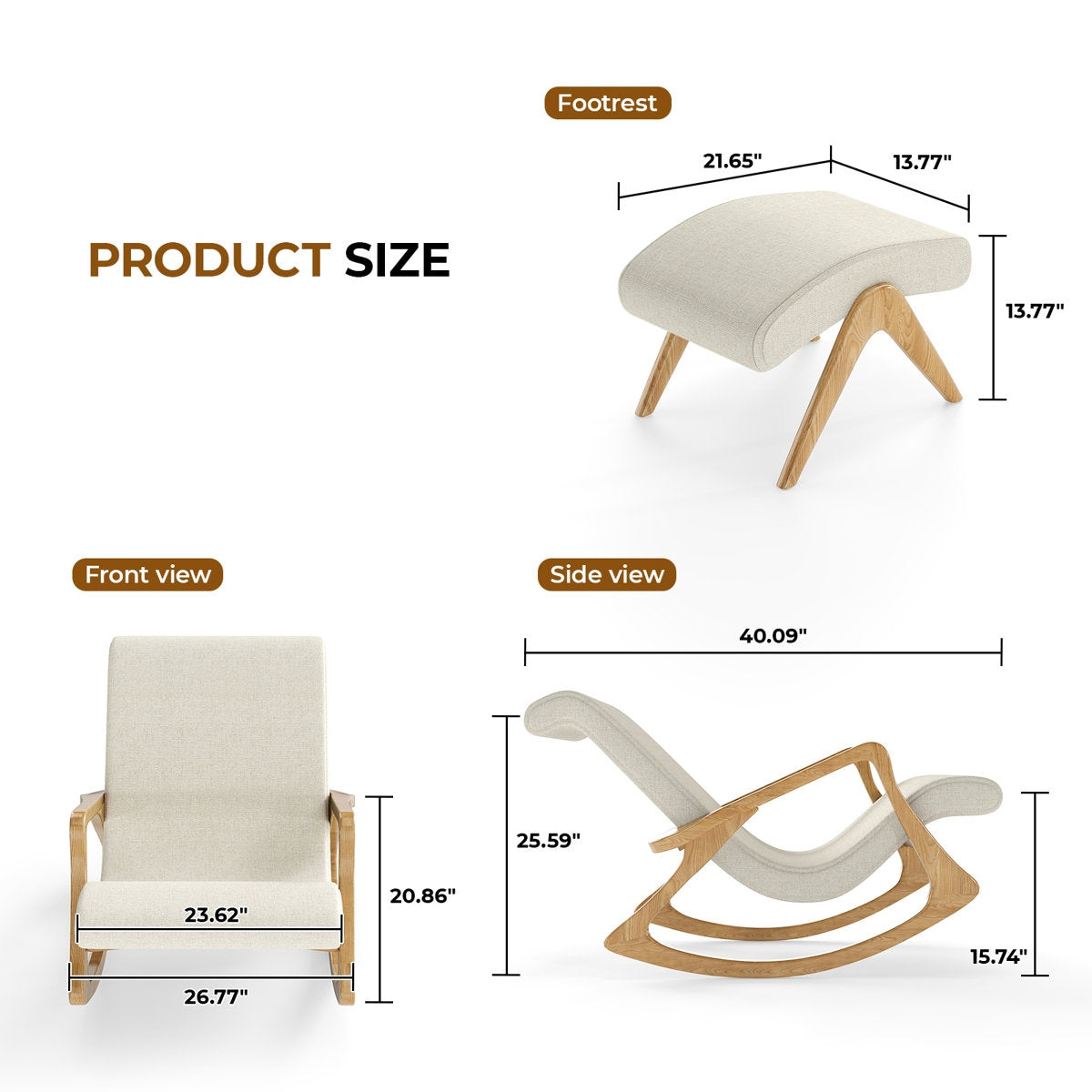 Solid Acacia Wood Rocker & Cotton Footstool Set for Living Room