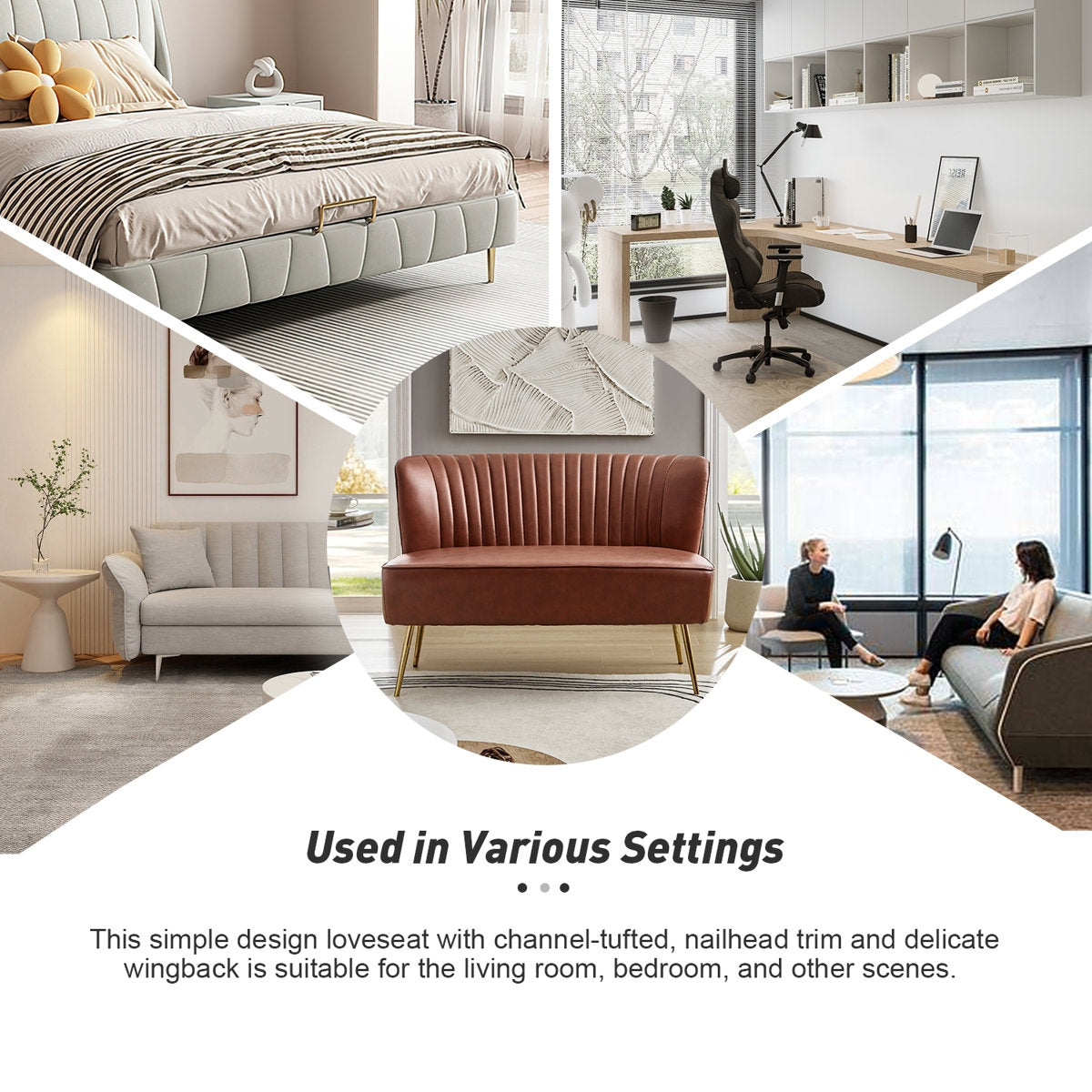Vintage Style Faux Leather Two-Seater Sofa with Metal Legs